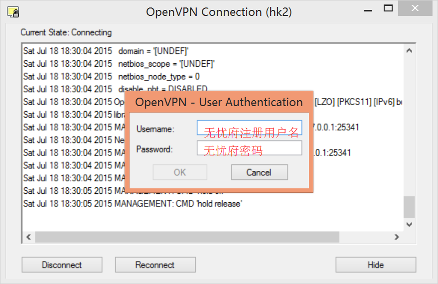 无忧府APP->下载配置文件->OpenVPN->手工配置