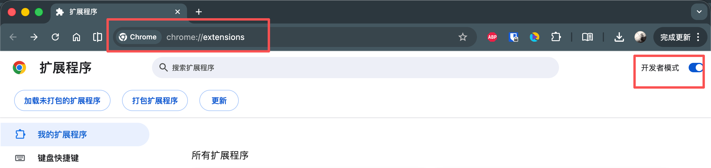 2. Enter Chrome, File menu, open "Extensions", and click "Open Developer mode“ in the upper right corner.