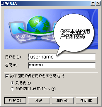 第十步:填写在无忧府VPN上注册的用户名和密码,点击”连接“